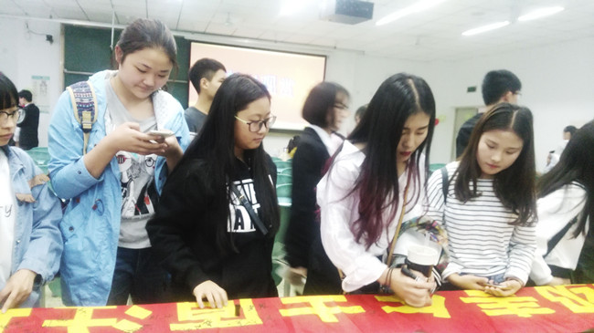 首先,主持人带领全体人员合唱青年志愿者之歌,那铿锵有力的歌声展现出我院学子饱满的精神状态。接着由郭梦欣书记为大家做相关志愿者介绍,并强调了志愿者活动就是服务社会,回报社会。之后由优秀志愿者代表以及新生志愿者代表发言,他们分享了自己的当志愿经历与体会。随后,青年志愿者服务中心的部长们分享交流了部门中举办的“心系留守儿童,绘画美丽心灵”的西坝支教、管系共建、爱心义卖、客运中心站志愿者服务活动,并为大家耐心地讲解了志愿四川的注册方式,他们表示在这些志愿活动中感受到了从这个浮躁的社会脱离出来,在孩子那里得到纯粹的慰籍。结束发言后,大会全体成员进行了志愿者宣誓。接着,进入大会最重要的环节:进行沐川社会实践、西坝支教活动的先进个人表彰,并由郭梦欣老师为他们颁发奖状,伴随着一阵阵的掌声,大会圆满成功。在大会结束后,各位领导和志愿者们都纷纷在横幅上签下名字。