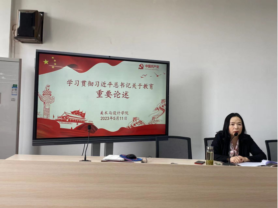 杨虹带领美术与设计学院全体教职工学习了习近平总书记关于教育的重要论述:深刻把握习近平总书记关于教育的重要论述的思想精髓。1.始终坚持党对教育事业的全面领导。坚持党的全面领导是中国特色社会主义教育的灵魂和根基,是高校坚持社会主义办学方向的根本保证。2.始终坚持以人民为中心办教育。坚持以人民为中心发展教育,是习近平总书记和党中央坚持人民至上、坚持以人民为中心的发展思想在教育领域的集中体现。3.始终坚持立德树人根本任务。4.始终坚持教育与经济社会协调发展。