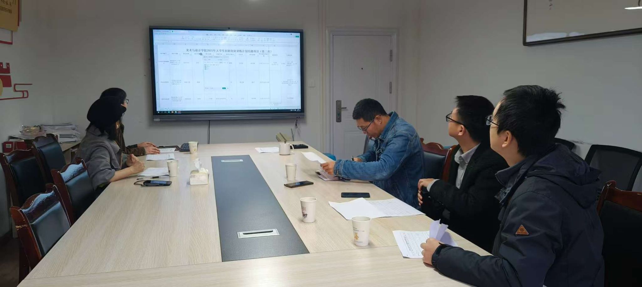 本网讯(文/图 伍金威)2025年11月5日上午,美术与设计学院在旷怡楼302会议室组织召开2025年度大学生创新创业训练计划项目(第二次)结题评审会。学院副书记赵元、副院长任素梅、教师何川、吴嘉川担任评审专家,创新创业工作联络员伍金威、李月参与评审工作。