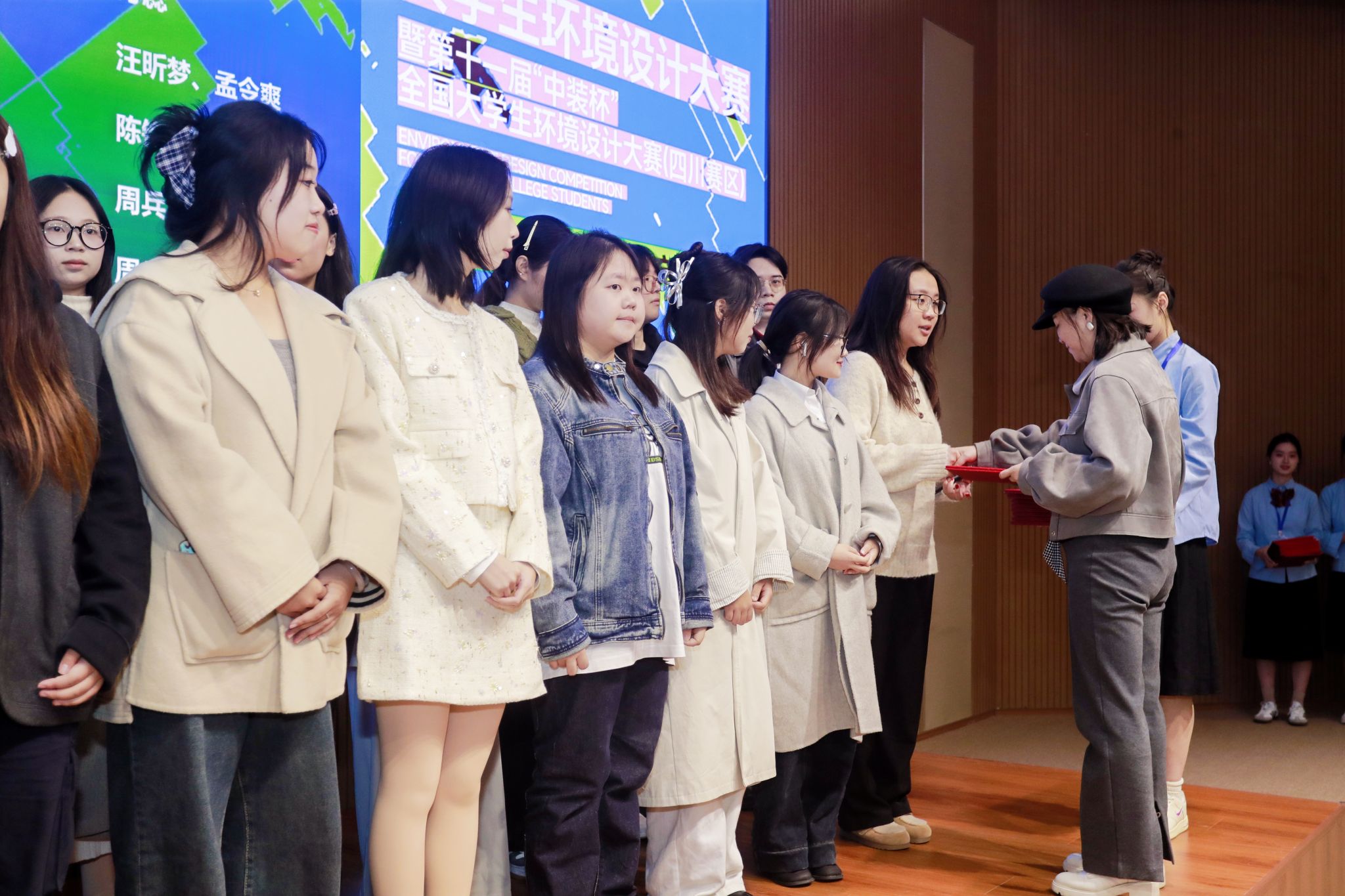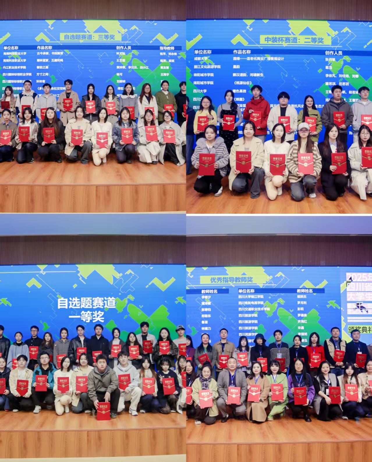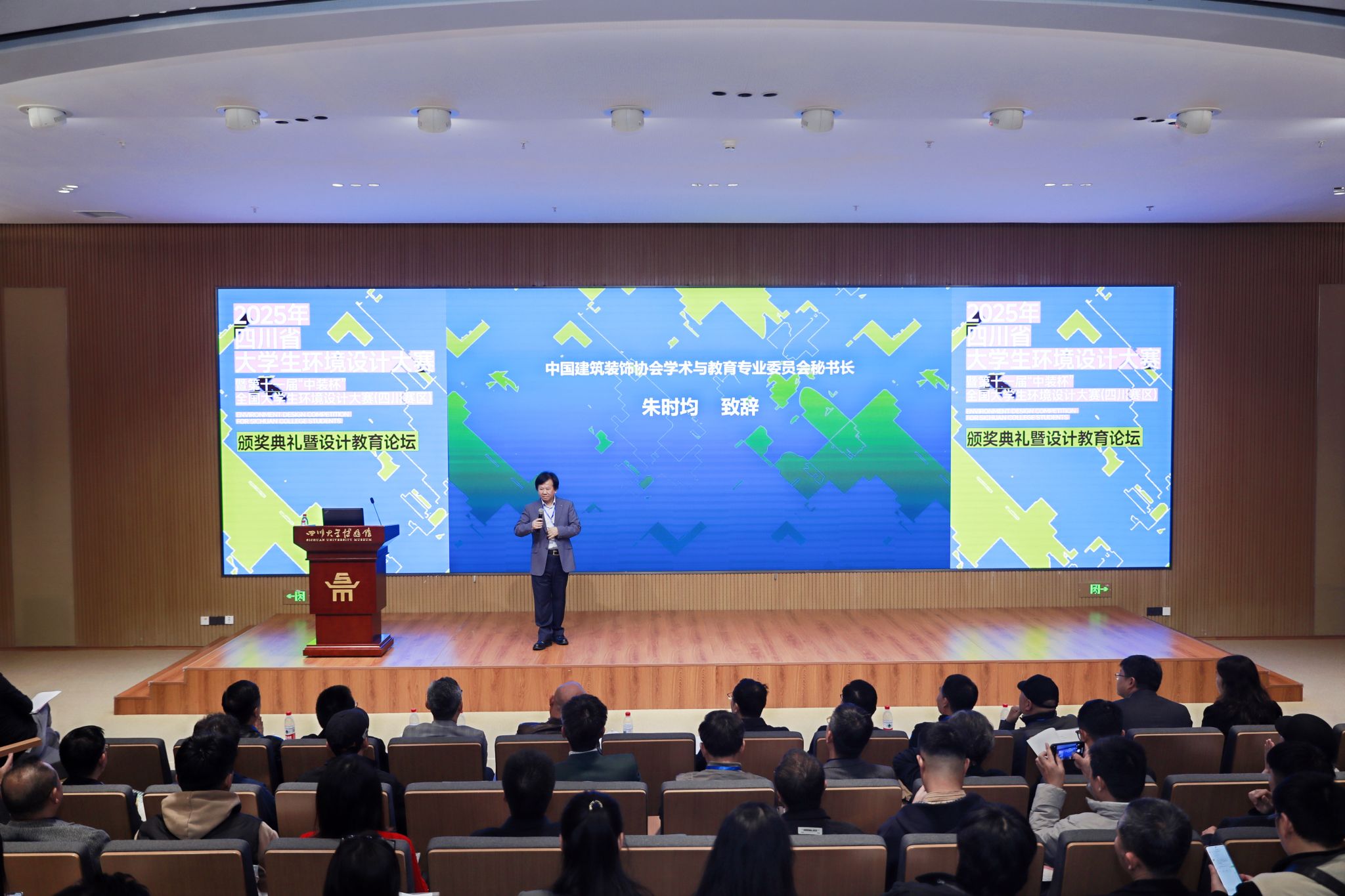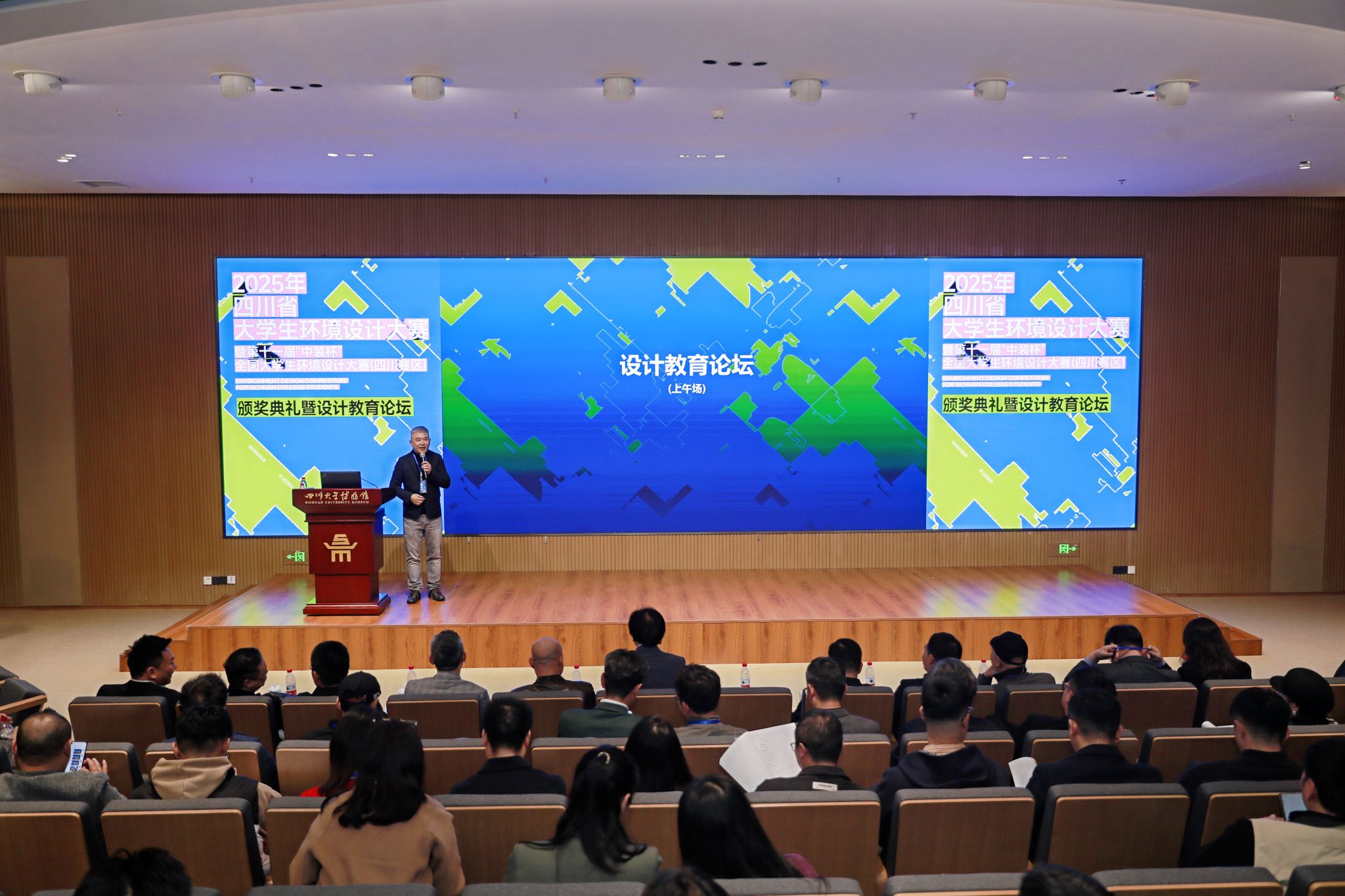 本次大赛由四川省教育厅主办、四川大学承办,吸引省内外47所高校近2800件作品同台竞技。我院环境设计专业学子在教师指导下,紧扣“智慧空间、文化营造、社会创新”主题,融合地域文化与现代设计,最终斩获一等奖1项、二等奖2项、三等奖5项及优秀指导教师奖1项;任素梅院长受邀为获奖选手颁奖。