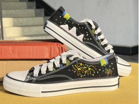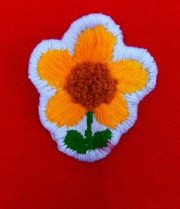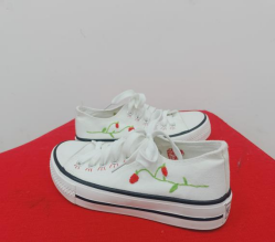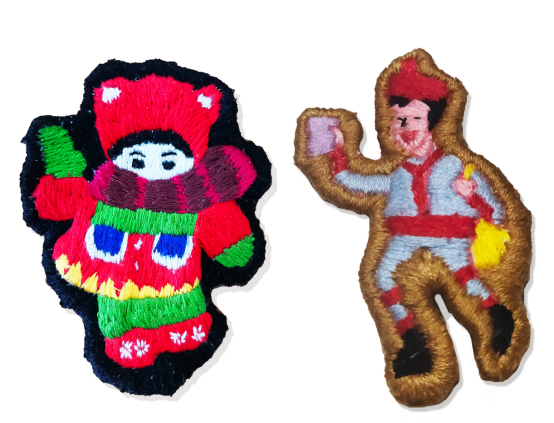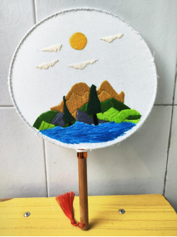 特殊教育的学生们将刺绣结合井研农民画独特的绘画风格,提取其图案元素、构图形式和艳丽的色彩,融合现代审美艺术观念,开拓创新设计思维,打造一系列井研农民画衍生品(鞋子、扇子、胸针配饰等)。