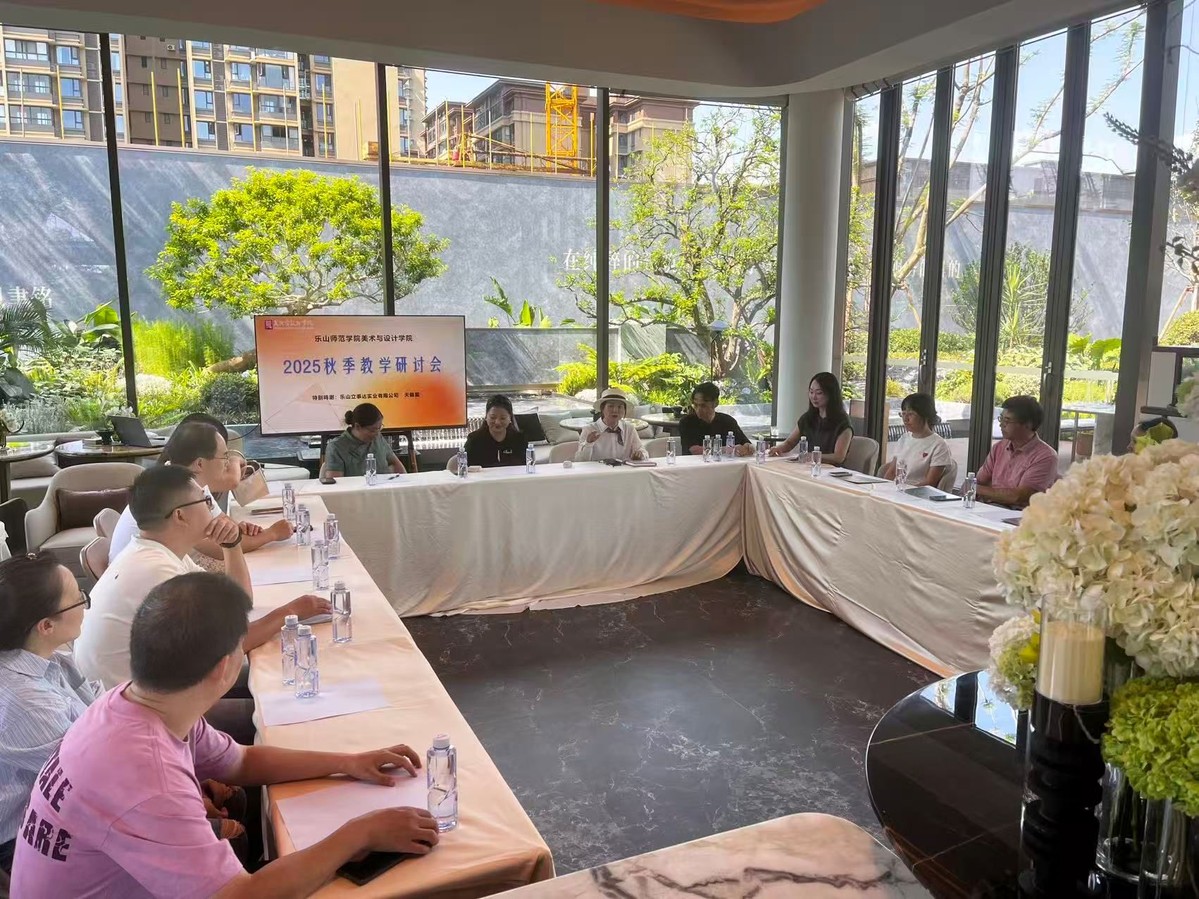 本网讯(文、图/王进修)为深化设计类专业教学改革,推动数智技术与设计教育深度融合,9月26日下午,美术与设计学院在滟澜洲天籁里江棠会客厅举办2025年秋季设计类专题教研活动。会议由副院长任素梅主持,院长熊火花、党委书记王孝琴出席,视觉传达设计、环境艺术、产品设计三个教研室全体教师参与研讨。活动围绕“数智赋能设计教育”、“课程体系创新”及“产教协同育人”三大主题,通过“主题发言—分组研讨—校企沙龙”三环节,共谋设计类专业高质量发展路径。