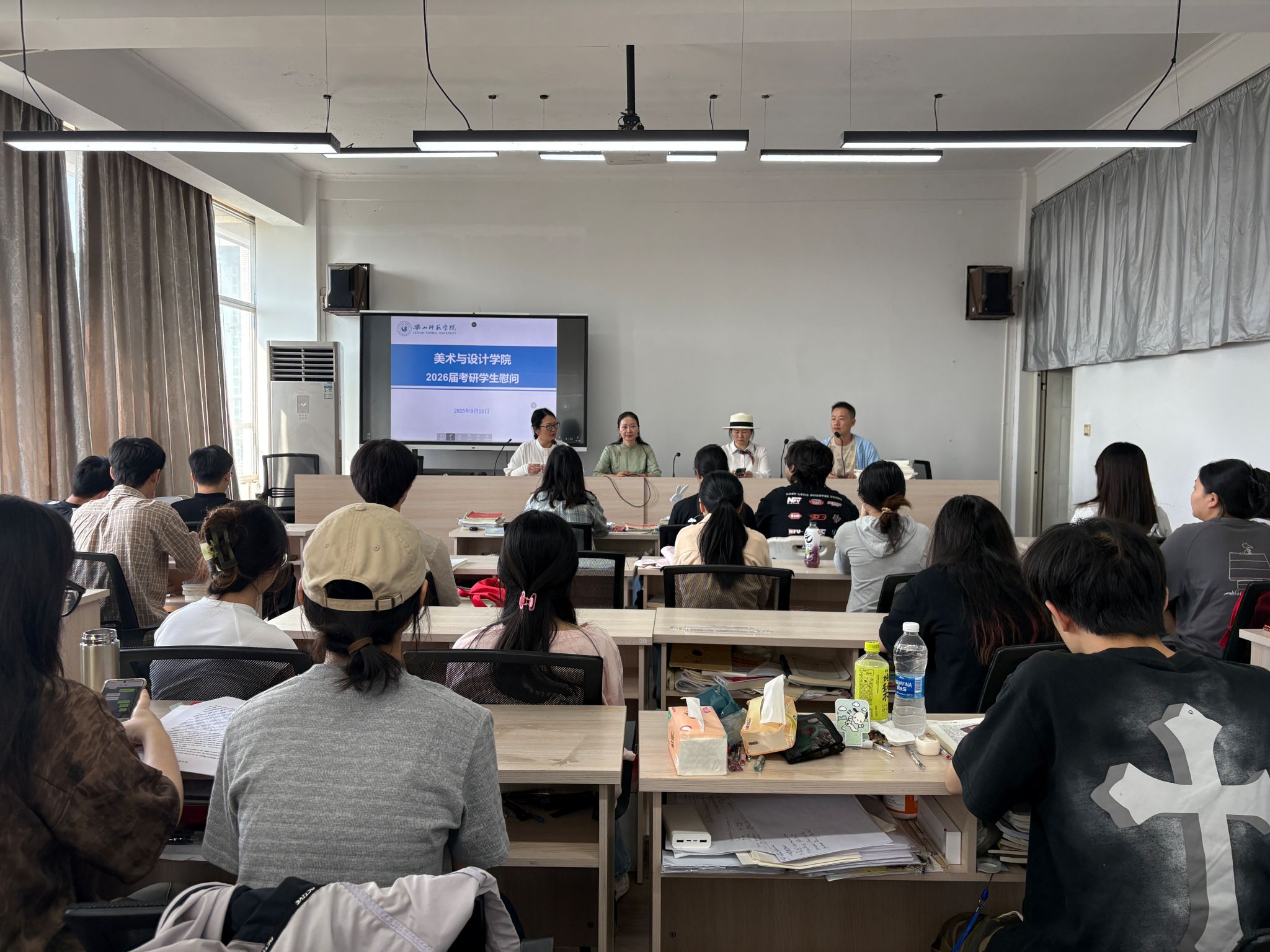 秋风送爽,战鼓催征。为鼓舞考研学子士气,坚定备考信心,科学规划最后冲刺阶段,9月25日上午,美术与设计学院在学院会议室举行了2026届考研学生慰问动员大会。学院党委书记王孝琴、院长熊火花、副院长任素梅以及毕业班辅导员与备战考研的同学们齐聚一堂,在距离全国硕士研究生招生考试仅剩88天的关键节点,为他们送上学院的暖心关怀与殷切期望。大会由副书记赵元主持。大会在温馨而热烈的氛围中开始。